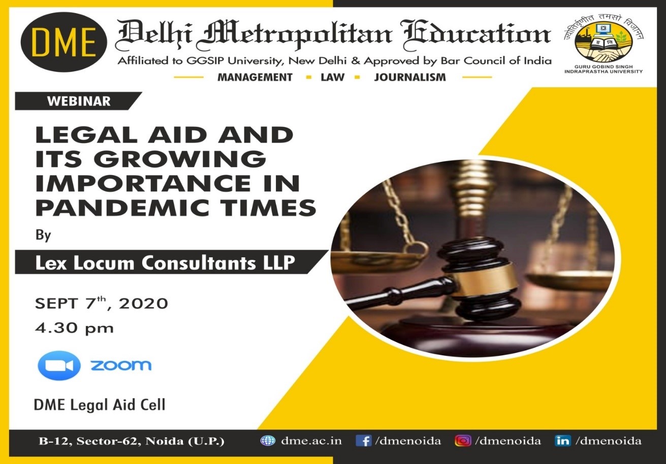 Ms. Preeti Yadav, DCP Women Safety assured women on the safety issues while addressing a select gathering of the students and teachers of Delhi Metropolitan Education (DME) on August 25th, 2023. She spoke in an awareness session on ‘Women Safety’ organised by the Internal Complaints Committee, Women Empowerment Cell and Legal Aid Cell of DME in collaboration with Noida Police. The aim was to sensitise the students and faculty members on safety measures in everyday life. She disclosed various helpline numbers like 1090, 181 and 112 to the students that they might be required in case any emergency arises. Encouraging the students to take action against any crime or fraud calls/messages on WhatsApp/social media, DCP explained to the students the process of filing a complaint and approaching police officials of their respective Thana. Regarding the importance of women’s safety, the POSH Act and the need for awareness of their rights, she said: “One should listen to their institution and recognise toxic relations, come out of it and don’t be afraid of the police”. - Legal Aid and Its Growing Importance in Pandemic Times